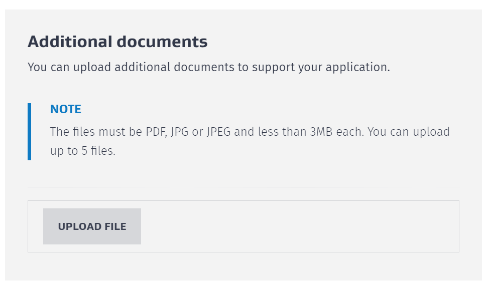 Ahora te permiten subir hasta 5 archivos extra. Si has cambiado de nombre, o tu pasaporte se ha dañado y tienes algún documento oficial extra que quieras añadir, este es el apartado donde puedes hacerlo.