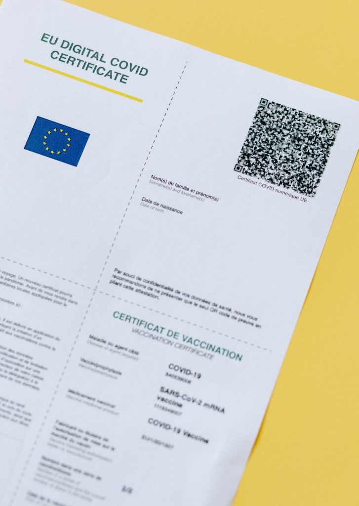 Necesitarás poseer un certificado digital de vacunación o algún tipo de documento oficial que verifique que tienes la pauta completa de la vacuna. Este documento tiene que estar expedido por el ministerio de salud del gobierno o algún organismo oficial. Además, tiene que contener la siguiente información: